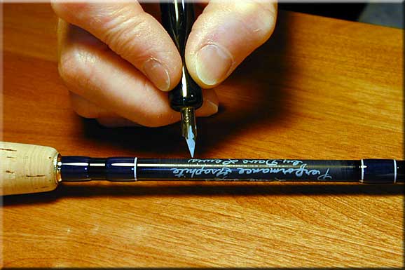 Mary Lu does the writing on the rods. She mixes up her inks to match the color of the trim wraps.